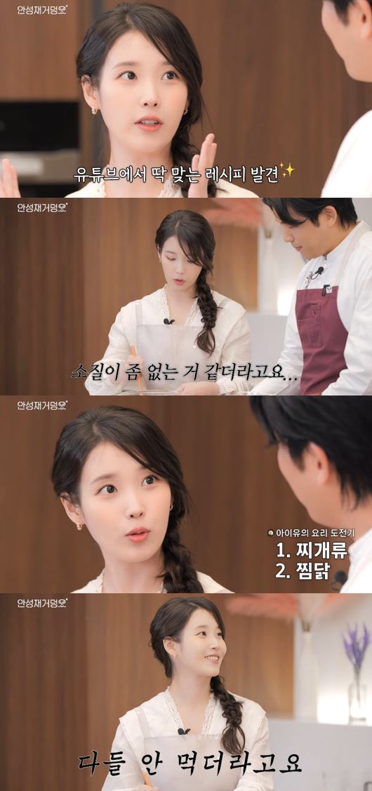 또 안성재는 “아이유 님 이런 전 말고 평소에도 요리하냐”고 물었다. 아이유는 “처음 이제 자취 시작했을 때 요리가 잠깐 재밌었다. 먹는 걸 또 좋아해서 근데 제가 소질이 좀 없는 것 같다”라고 고백했다.