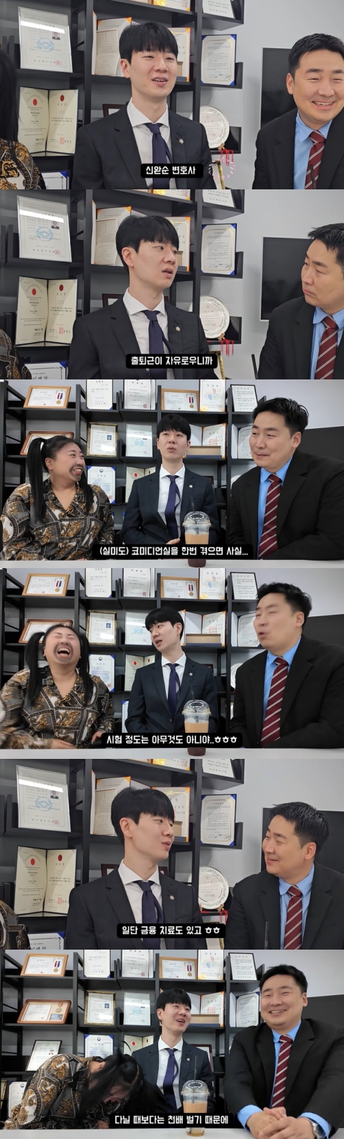 신완순은 "사실 근데 코미디언실을 한번 겪으면 변호사 시험 정도는 아무것도 아니다. 독서실은 오전 9시에 갔다가 오후 9시에 오면 된다. 그만큼만 공부해도 충분하다. 변호사보다 개그맨 생활이 훨씬 빡세다"고 증언했다.