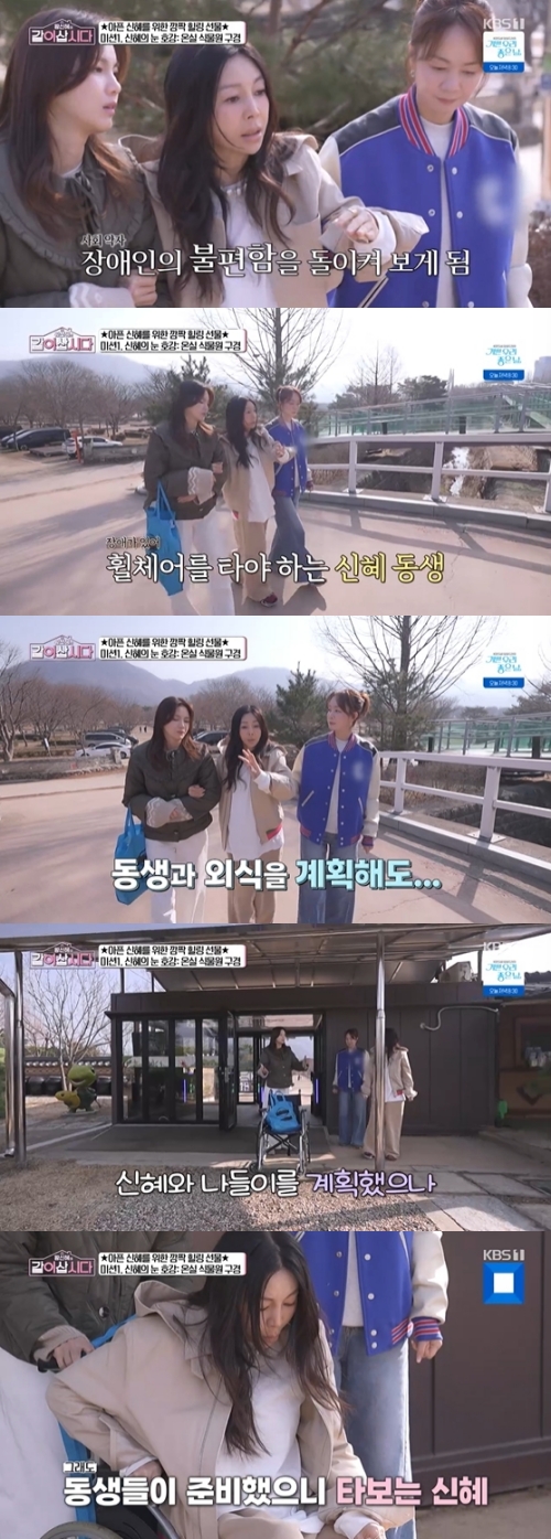 이날 두 동생들은 골절상을 입은 황신혜를 위해서 휠체어를 준비해 식물원 구경을 시작했다.