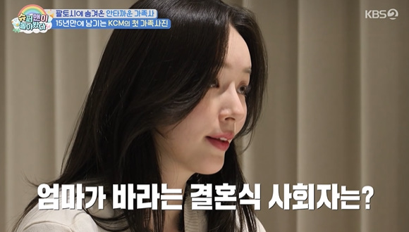 이어 아내의 독사진도 공개됐다. 모델출신 답게 포즈가 자연스러웠다. 결혼 15년만에 엄마로 첫 독사진을 찍은 아내에 KCM은 "올리비아 핫팩이다"고 해 웃음짓게 했다.