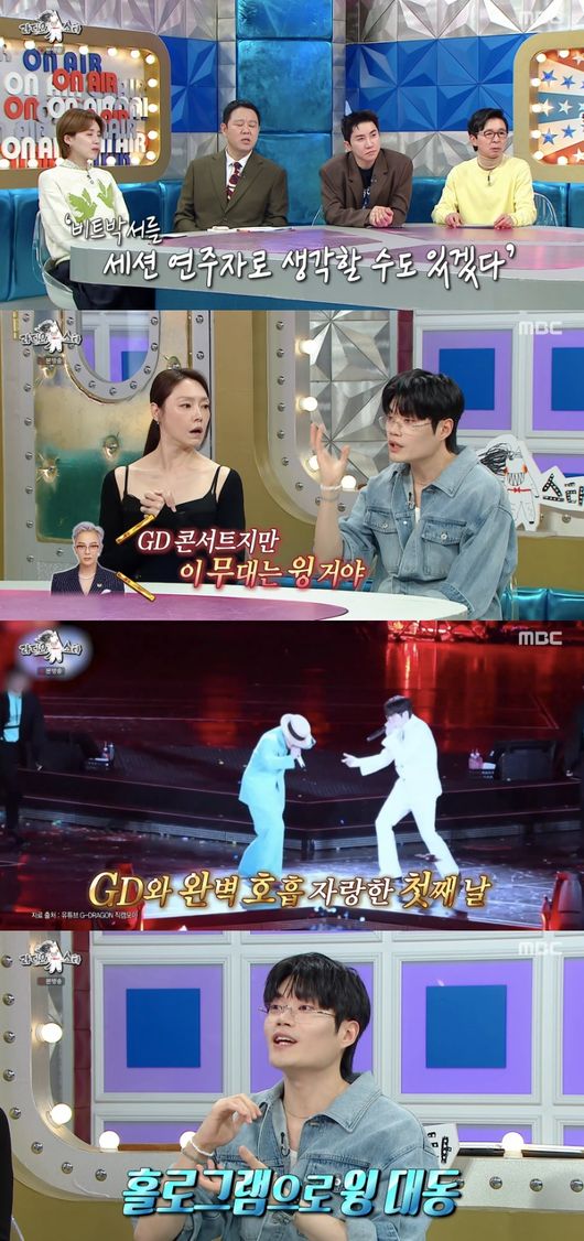 그렇게 3만 명 앞에서 폭풍 비트박스를 하게 된 윙은 지드래곤과 완벽한 호흡을 자랑했다. 이어 그는 “두 번째 날에는 리프트 타고 올라가는데 뒤에서 매니저 형이 ‘3분 더 해야 한대’ 하더라”라고 이야기했다.