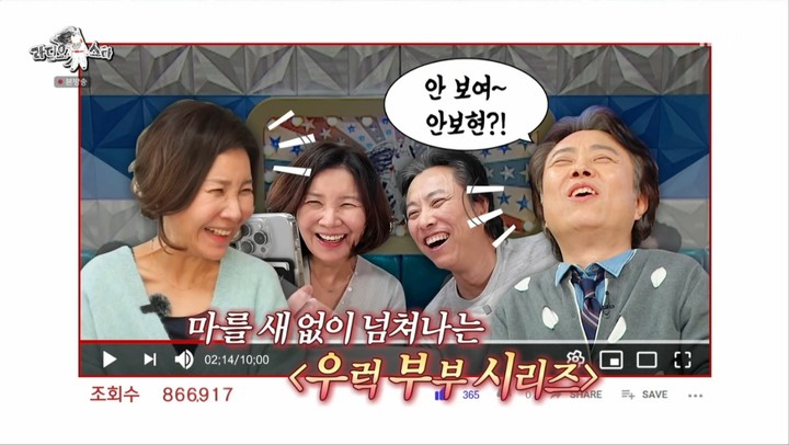 하지만 걱정과 달리 서현철은 시작부터 아내 정재은과 함께 유튜브를 시작한 근황을 전하며 아내 에피소드를 꺼냈다. 그는 "아내가 유튜브 제작진들이 올 때 손님 대접을 한다고 제사 때 쓰는 제기에 붕어빵을 대접했다"면서 "제작진이 웃으니까 아내가 '저희는 원래 이렇게 산다'고 하더라"고 덧붙여 스튜디오를 웃음바다로 만들었다.