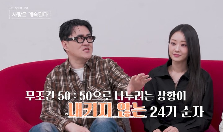 16일 방송되는 SBS Plus·ENA '나는 SOLO, 그 후 사랑은 계속된다'(이하 '나솔사계')에서는 18기 영호를 사이에 둔 24기 순자와 25기 순자의 2:1 데이트 현장이 그려진다. 세 사람은 식사를 하며 자연스럽게 연애관 이야기를 꺼냈다.