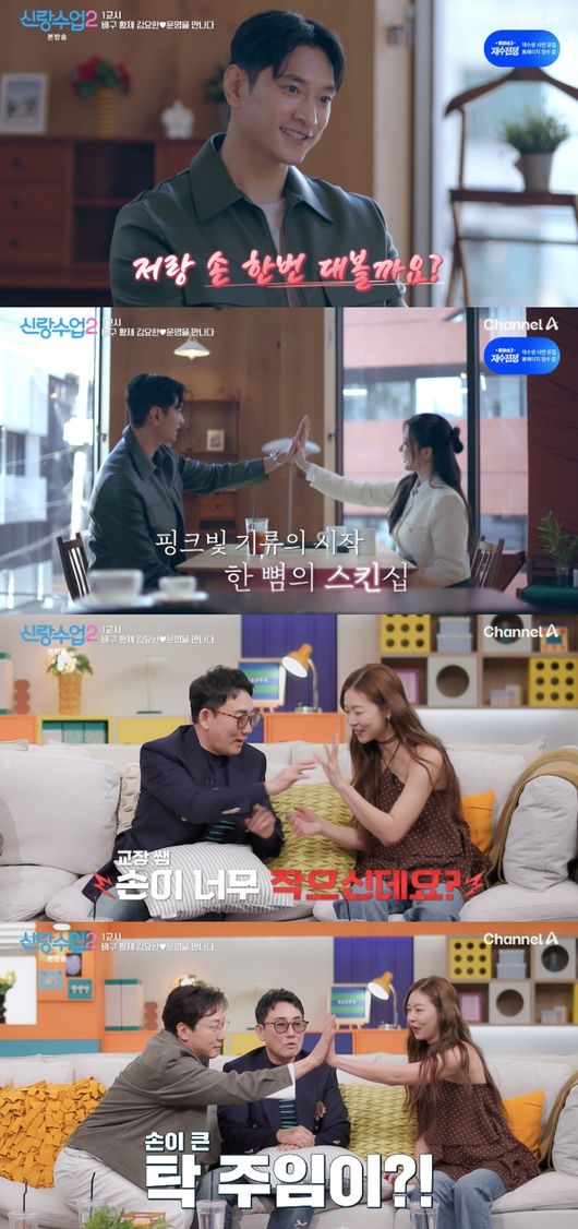 이때 탁재훈은 “손이 크다”라며 송해나와 손을 맞댔고, 깍지를 끼려 하자 송해나는 “아우 싫어”라고 외쳤다. 이에 탁재훈은 “내 손이 부끄럽다”라고 해 웃음을 자아냈다.