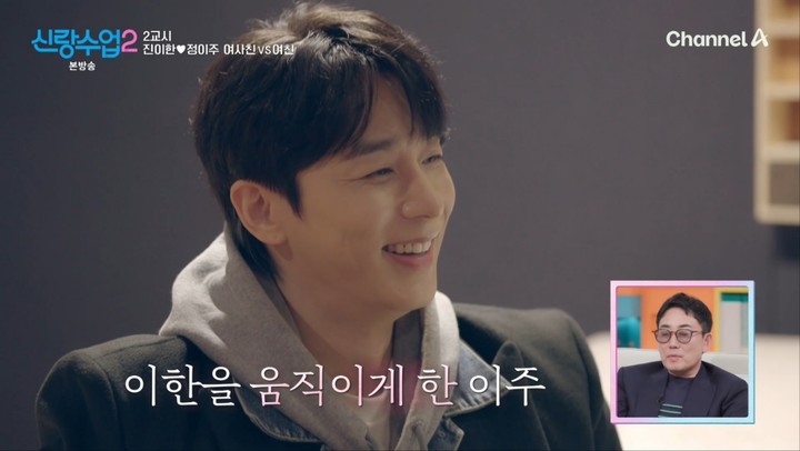 그는 정이주의 마음을 얻기 위해 노력 중이었다. 진이한은 "(정이주가) 남자다운 스타일을 좋아한다고 해서 운동을 하고 왔다"며 몸 상태를 은근히 어필했고, 왁스는 "잘 보이려고 노력하네"라며 기특한 웃음을 지었다.