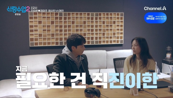 16일 방송된 채널A 예능 프로그램 '신랑수업2'에서는 진이한이 20년 지기 여사친인 가수 왁스를 찾아 연애 상담을 나누는 장면이 그려졌다.