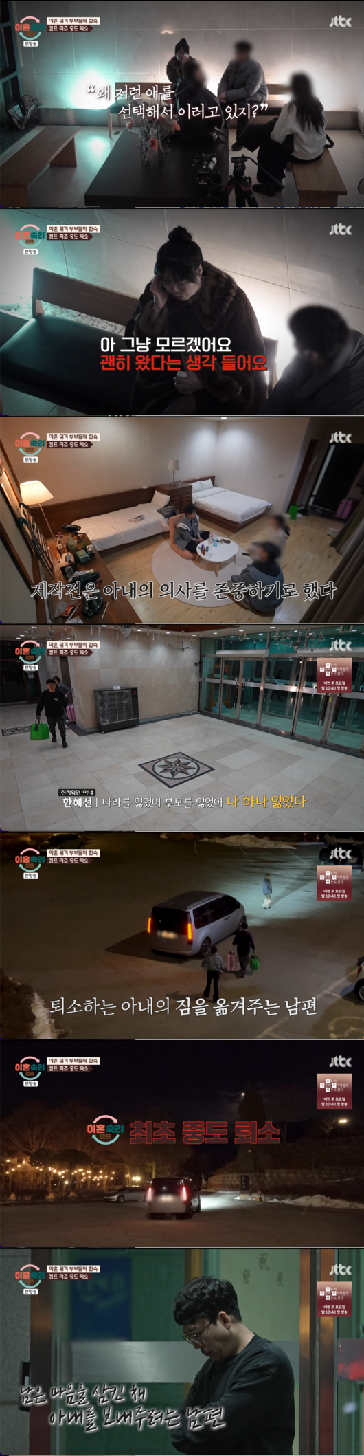 제작진은 심사숙고 끝에 아내의 확고한 의사를 존중하여 중도 퇴소를 결정했다. 이는 '이혼 숙려 캠프' 최초의 중도 퇴소 사례다.