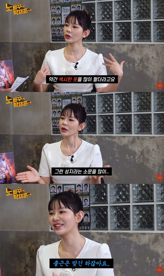 입고 나온 하얀 원피스를 언급하며 "이 옷이 얌전하지 않나. 노래방 출근룩은 아니지 않나"라며 억울해했다. 그러면서 "내가 너무 노는 사람처럼 생겼나 싶다"라며 속상해했다.