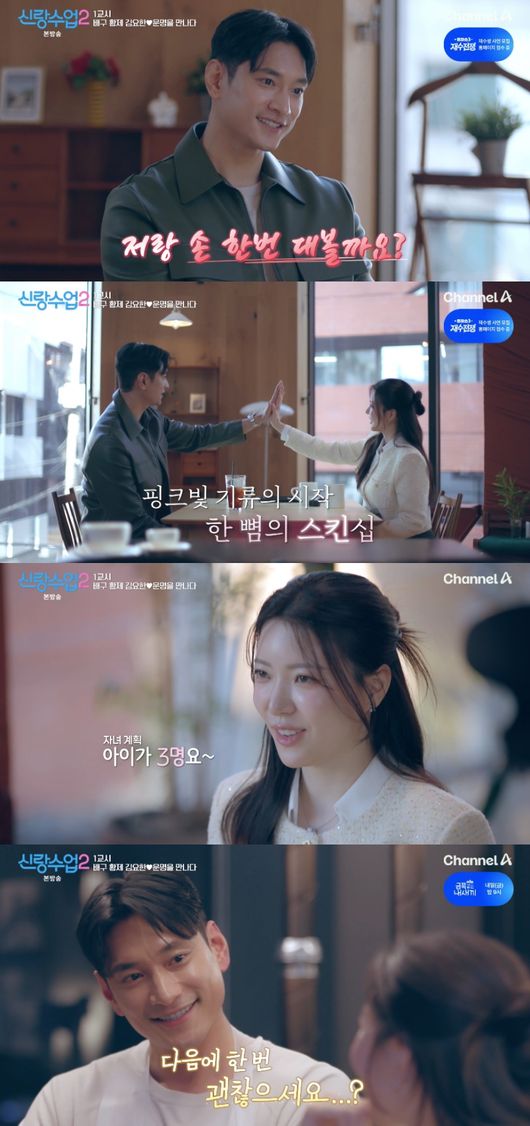 한 눈에 반한 김요한은 플러팅도 거침없었다. 웃을 때 얼굴을 가리는 이주연을 향해 “예쁜 얼굴을 왜 낭비하시냐. 보여달라”라고 했다. 이어 그는 “저랑 손 한번 대볼까요?”라며 자연스러운 스킨십을 유도하기도 했다.