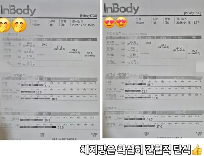 특히 김지혜는 간헐적 단식을 하면서 늦은 밤 9시에 튀긴 치킨까지 먹었지만, 적당한 운동을 병행한 덕분에 2주 만에 2.2kg을 감량해 놀라움을 자아냈다.