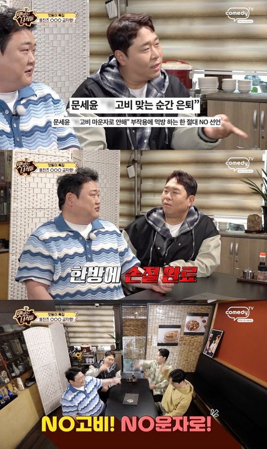이날 문세윤은 “내가 방송에서 얘기한 거 알지, ‘맛녀석’ 하는 동안 노 위고비, 노 마운자로”라며, “꽂는 순간 은퇴야”라고 선언했다.