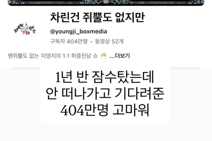 지난 16일 이영지는 개인 계정에 "차쥐뿔 기억하는 사람"이라는 질문을 던지며 해당 채널 캡처 사진을 업로드했다.