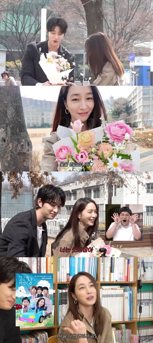 그럼에도 이민정 특유의 동안에 '연하남' 김재원의 매력이 더해져 훈훈한 투샷을 자랑했다. 앞서 이민정이 성균관대학교를 함께 다닌 코미디언 황제성과도 캠퍼스 투샷을 보여줬던 터. 그러나 김재원과는 그림체가 달랐다. 더욱이 김재원이 이민정에게 꽃다발까지 선물한 바. 이에 제작진조차 "제성님한테 죄송한데, 느낌이 다르네요"라며 감탄했다. 이민정은 웃음을 터트리며 "어쩔 수 없지"라며 수긍했고, "미안해 제성아. 그렇지만 너는 웃기잖아"라고 덧붙여 웃음을 더했다.