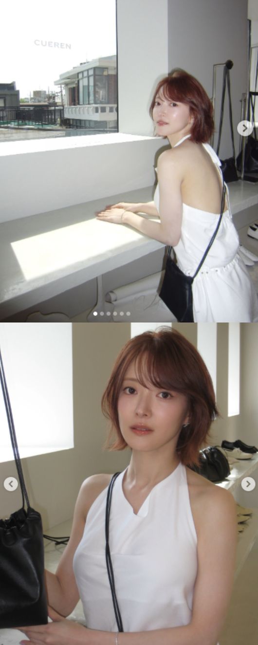 사진 속 이세영은 화이트 홀터넥 상의를 입고 블랙 크로스백 가방을 메고서 포즈를 취하고 있다. 바깥을 바라보며 환하게 미소를 띈 그는 깊이 패인 등을 과감하게 드러내 눈길을 끌었다.