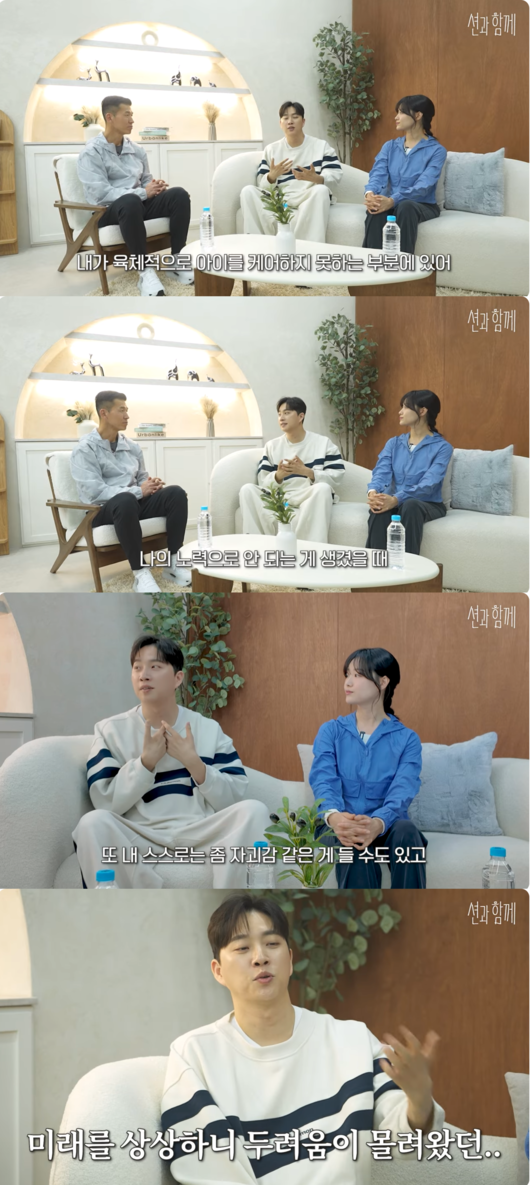 박위는 “사실 아직도 저는 두려움이 있어요. 내가 육체적으로 아이를 케어하지 못하는 부분에 있어 나의 노력으로 안 되는 게 생겼을 때 아내한테는 미안함, 또 내 스스로는 좀 자괴감 같은 게 들 수도 있고”라며 운을 뗐다.