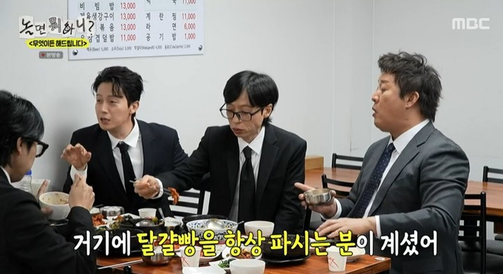 식당에 도착한 유재석은 곧장 이곳을 알아봤다. 2년 전 녹화 중 잠시 들러 청소를 돕고 화장실만 이용했던 추억이 깃든 장소였던 것. 당시 배가 고팠던 유재석은 이곳에서 국밥 한 그릇 먹고 싶어 했다고 회상했다. 다시 방문한 유재석을 본 사장님은 "화장실 가려고 오셨어요?"라는 뼈 있는 농담을 건네 화기애애한 분위기를 만들었다.