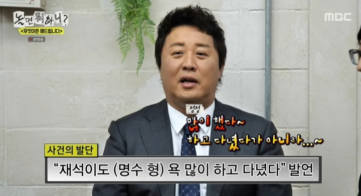당황한 정준하가 얼버무리자 유재석은 "다시 말하지만 박명수 씨 뒷담화를 같이 하지 않았냐. 내가 주도한 것도 아니었다"며 "오히려 그때 '박명수가 네 얘기 많이 하고 다닌다'고 먼저 이간질하지 않았냐"고 쐐기를 박았다. 결국 정준하가 "미안하다"고 사과하자, 하하는 "형이 또 (밥) 쏴라"고 거들었다. 정준하는 "또 쏴? 이것 때문에 불렀구나? 그래 먹어, 먹어!"라고 받아쳐 여전한 '무한도전' 시절 케미를 뽐냈다.
