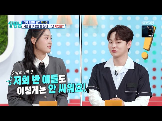 이를 들은 은지원은 “야, 너 효정이 없으면 분량 안 나와? 너 혼자 있으면 하는 거 없어?”라며 소리를 버럭 질렀다. 박서진은 “아무래도 없다”라며 아주 쿨하게 인정했다.