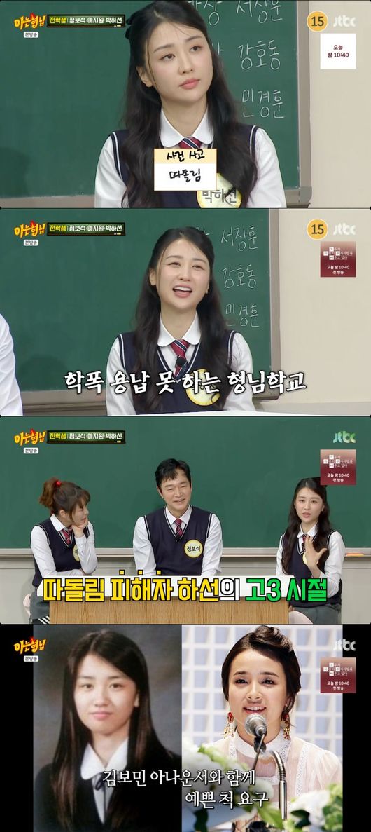 박하선은 18일 오후에 방송된 종합편성채널 JTBC 예능프로그램 ‘아는 형님’에 출연해 학창시절 당했던 따돌림 피해에 대해 언급했다.