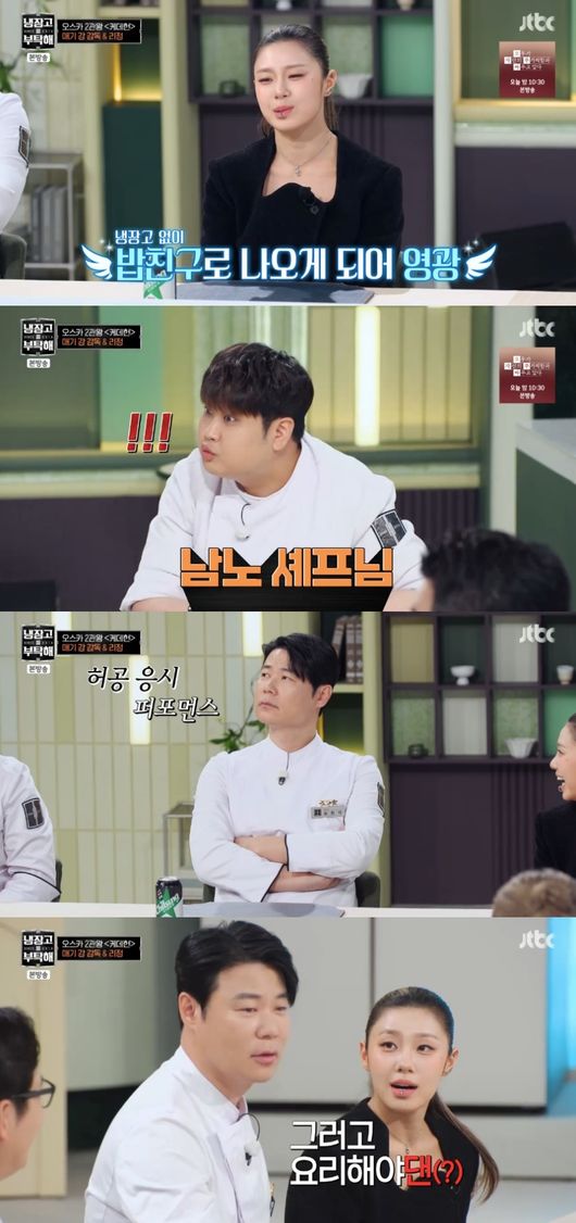 19일 방송된 JTBC ‘냉장고를 부탁해’(이하 ‘냉부해’)에서는 ‘케이팝 데몬 헌터스’ 매기 강 감독과 댄서 리정이 출연했다.