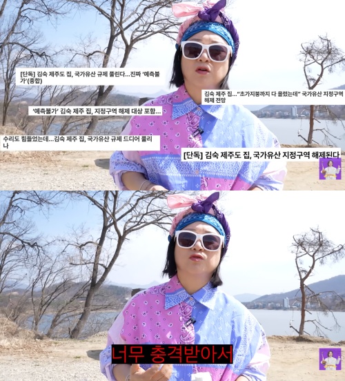 앞서 김숙의 200평대 제주도 집 부지는 국가유산 지정 구역 해제 대상에 포함되며 화제를 모은 바 있다. 해당 조정안이 확정될 경우 기존 문화재 지정 구역에서 벗어나 수선 및 활용의 자율성이 확대되는 것으로 알려졌다.