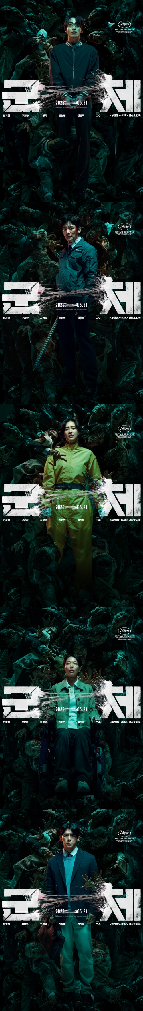 5월 21일 개봉을 확정한 연상호 감독의 신작 영화 '군체'가 6인 6색의 아우라를 담아낸 캐릭터 포스터 6종을 공개했다.
