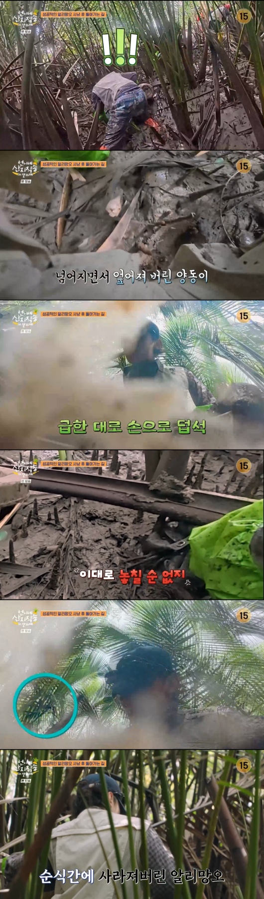 사건은 멤버들이 이동하던 중 발생했다. 마지막까지 크랩홀을 살피던 덱스가 실수로 알리망오가 가득 담긴 양동이를 통째로 엎어버리는 대형 사고를 친 것. 어렵게 잡은 크랩들이 사방으로 흩어지자 덱스는 “안 돼, 크랩들이 도망친다!”라고 절규하며 다급하게 손을 뻗었다.
