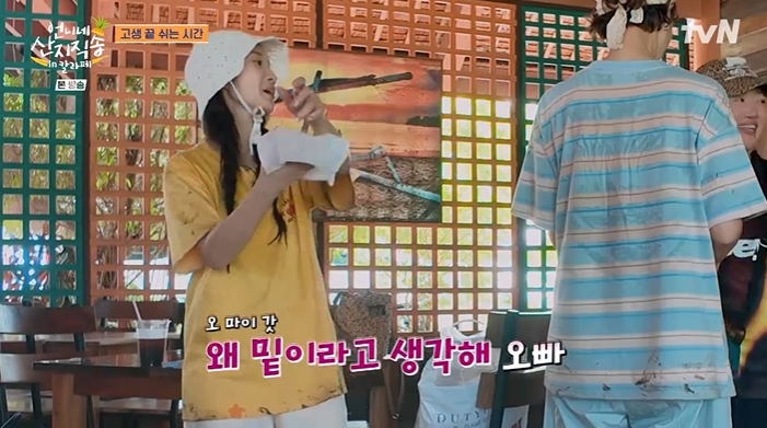 이들은 총 6마리의 알리망오를 사냥해 코인 2개를 획득한 네 사람은 5성급 발 마사지와 현지 보양식을 즐기며 잠시 숨을 돌렸다. 이 과정에서 덱스는 김혜윤에게 쿨링 티슈를 나눠주며 “내 밑으로 한 명 있으니까 좋다”고 도발했다. 김혜윤이 “왜 밑이라고 생각하냐”고 발끈하자, 덱스는 “나이가 밑이잖아. 한 살 동생 주제에”라며 얄미운 오빠미(美)를 발산했다. 두 사람의 티격태격 케미는 극한의 노동으로 지친 현장에 활력을 불어넣었다.