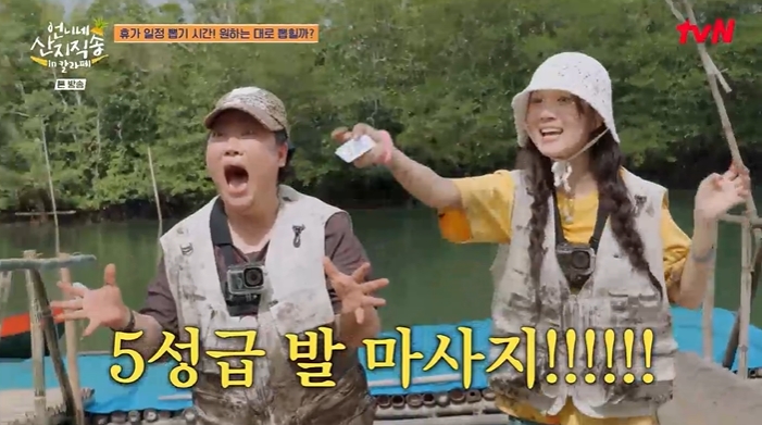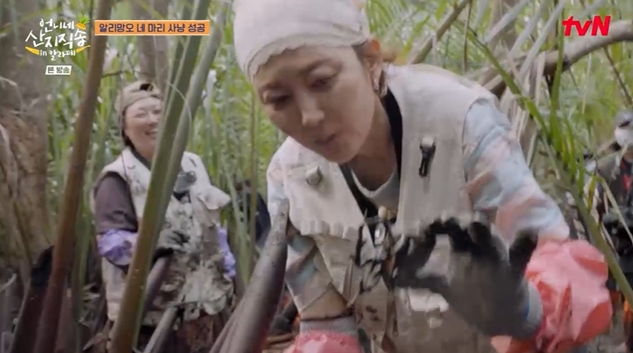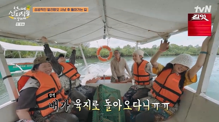 23일 방송된 tvN ‘언니네 산지직송 in 칼라페’에서는 배우 염정아, 박준면, 김혜윤과 ‘에이스’ 덱스가 알리망오(게) 사냥을 위해 진흙탕 사투를 벌이는 모습이 그려졌다. 평화로운 휴가를 기대했던 멤버들에게 닥친 것은 쉴 새 없이 웅덩이를 쑤셔야 하는 고된 노동뿐이었다.