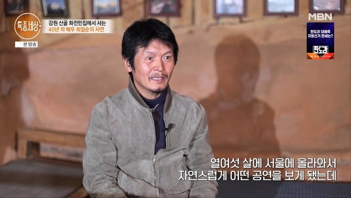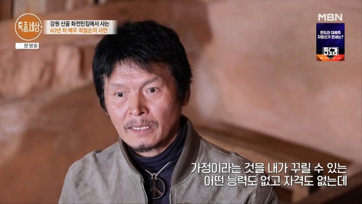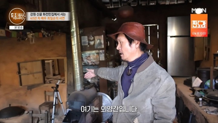 최일순은 현재 강원도의 한 산골에서 20여 년째 생활 중이다. 외부와 단절된 듯한 환경 속에서 그는 반려견과 함께 자급자족에 가까운 삶을 이어가고 있었다. 해당 공간은 어린 시절 가족과 연결된 의미 있는 장소로, 그는 직접 이를 매입해 삶의 터전으로 삼았다.