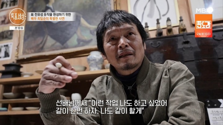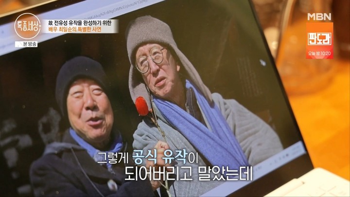 23일 방송된 MBN 특종세상에서는 배우 최일순의 근황과 함께 고 전유성이 남긴 유작을 지켜가는 이야기가 공개됐다.