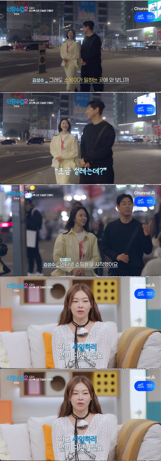 23일 전파를 탄 채널A ‘신랑수업2’에서는 김성수가 12살 연하 박소윤과 함께 동대문에서 철야 데이트 겸 사업 서포트를 하는 하루가 공개됐다.