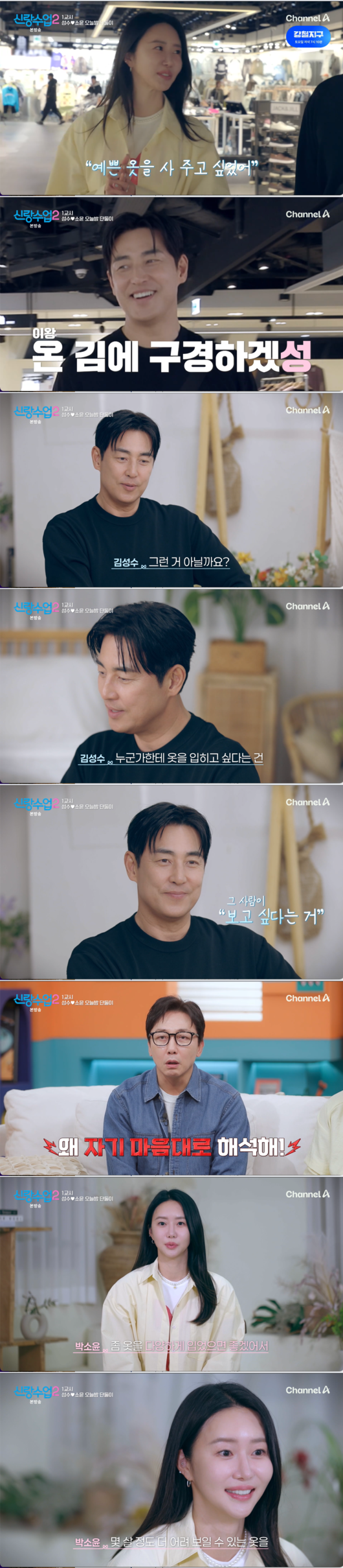 23일 전파를 탄 채널A ‘신랑수업2’에서는 김성수가 12살 연하 박소윤과 함께 동대문에서 철야 데이트 겸 사업 서포트를 하는 하루가 공개됐다.
