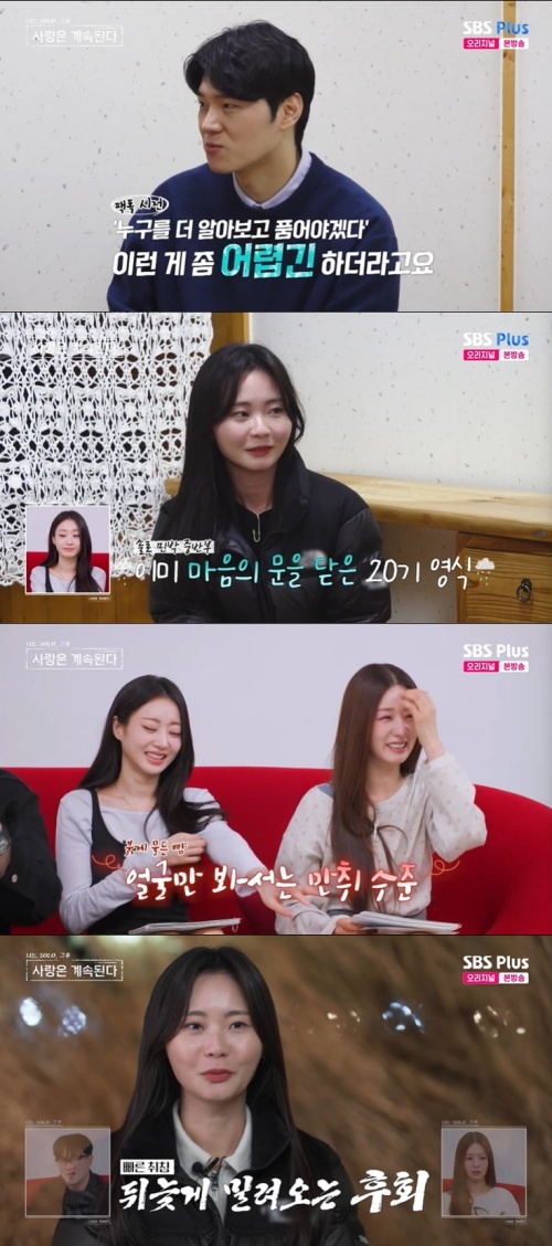 23일 오후 방송된 ENA, SBS Plus 예능 프로그램 '나는 SOLO, 그 후 사랑은 계속된다(나솔사계)'에서는 20기 영식이 25기 영자, 17기 순자를 두고 고민 중인 가운데 25기 순자의 대화 신청에 응했다.