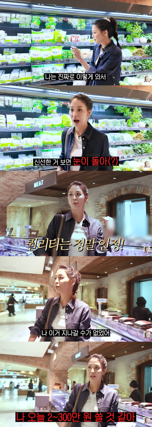 특히 고기 코너의 압도적인 퀄리티 앞에서는 완전히 무장해제됐다. 한고은은 “나 이거 지나갈 수가 없었어. 나 오늘 한 2~300만 원 쓸 것 같아. 나 쫓겨나면 어떡하지?”라며 남편의 눈치를 보는 듯하면서도 쇼핑을 멈추지 않아 현장을 웃음바다로 만들었다.