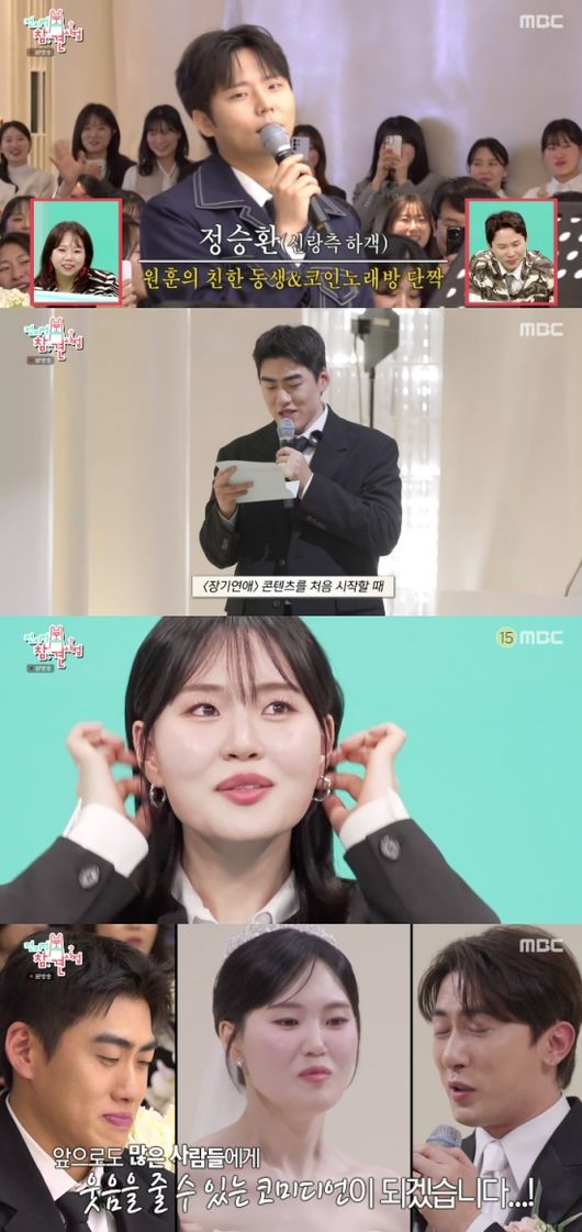 사회는 이수근이 맡아 환호를 불러일으켰다. 축하 영상에는 유재석, 신동엽 등이 등장하기도. 결혼식이 시작되자 큰 박수가 쏟아졌다. 축가에는 정승환, 헤이즈, 폴킴이 등장했고 축사는 콘텐츠에서 엄지윤의 동생으로 열연 중인 조진세가 했다.