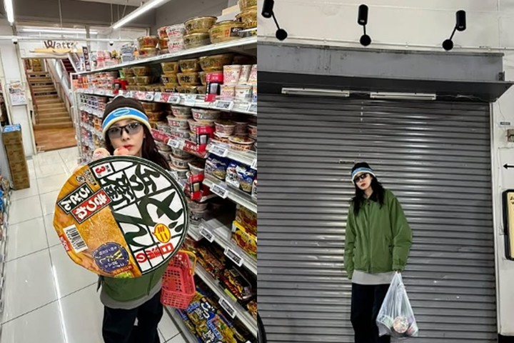 공개된 사진 속 산다라박은 양손을 재킷 주머니에 넣은 채 어딘가를 바라보고 있다. 또 독특한 디자인의 실버 스커트를 매치해 개성있는 룩을 선보이고 있다. 이어진 사진 그는 신이난 듯 활짝 미소를 짓고 있어 이목을 집중시킨다. 이후 산다라박은 일본 편의점에 방문해 컵라면을 잔뜩 구입, 즐거운 여행을 즐겼다.
