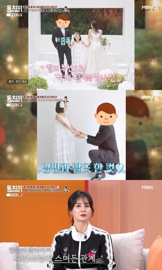 남편과 첫 만남에 대해서는 "골프 치다가 친해진 동생이었다"며 "제가 '싱글맘'이다 보니까 몸으로 놀아주는 걸 잘 못해서 남사친들과 잘 어울렸다, 친구들이 아빠처럼 놀아주고 했는데 그중에 한 명이었다"고 설명했다.