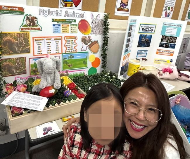 공개된 사진 속 엘리 양은 자신이 만든 프로젝트 앞에서 엄마와 함께 환한 미소를 짓고 있다. 토끼와 다람쥐를 합성한 독특한 캐릭터와 이를 뒷받침하는 상세한 설명 자료들이 남다른 창의력과 학업 열정을 짐작게 한다.