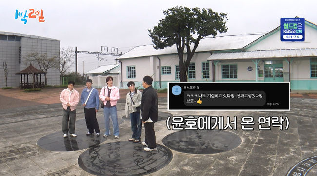 그러자 딘딘은 "유노형이 9시까지 연락이 안 되다가 저녁 9시에 '나도 이제 정신차리고 일어났다. 수액맞으러 가려고' 라고 연락왔다"고 설명했다. 이와 함께 화면에는 "나도 기절하고 잤다. 진짜 고생했다"는 유노윤호의 메시지가 공개돼 웃음을 더했다.
