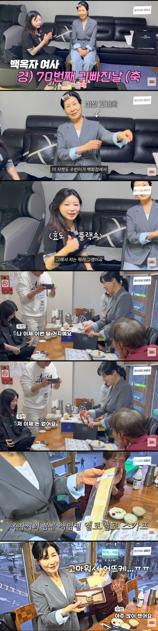 손녀의 선물 공세는 여기서 끝이 아니었다. 이어진 식사 자리에서 수빈 양은 할머니를 위해 정성껏 준비한 명품 스카프와 명품 가방을 차례로 꺼내 놓았다. 생각지도 못한 고가의 선물 세례에 백 여사는 “큰일 났네. 쟤 돈 너무 썼네”라며 걱정 섞인 기쁨을 표했다.