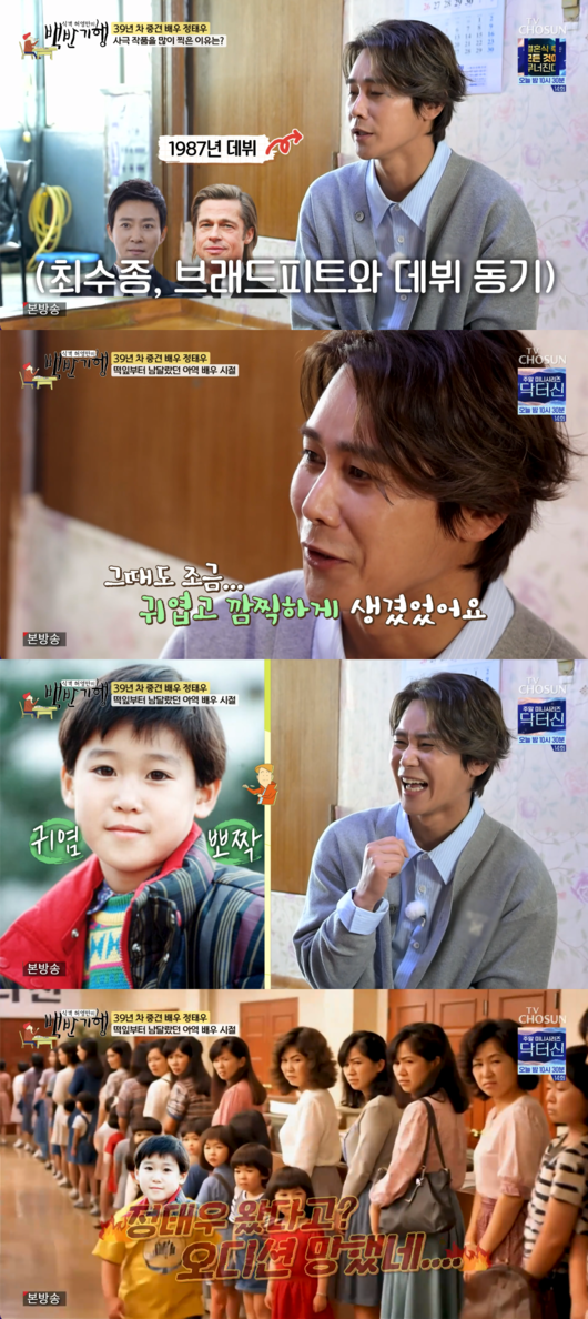 이날 정태우는 무려 1987년에 데뷔한 39년 차 베테랑 배우로서의 남다른 포스를 풍기며 과거 비화를 방출했다. 정태우는 데뷔 시절을 떠올리며 “그때도 귀엽고 깜깜하게 생겼다. 오디션에 등장하면 다들 똥 씹은 표정이었다. ‘쟤가 하겠네’ 저도 기억이 안 나지만 똘망똘망하게 잘 했다고 하더라고요”라고 말해 현장을 웃음바다로 만들었다.