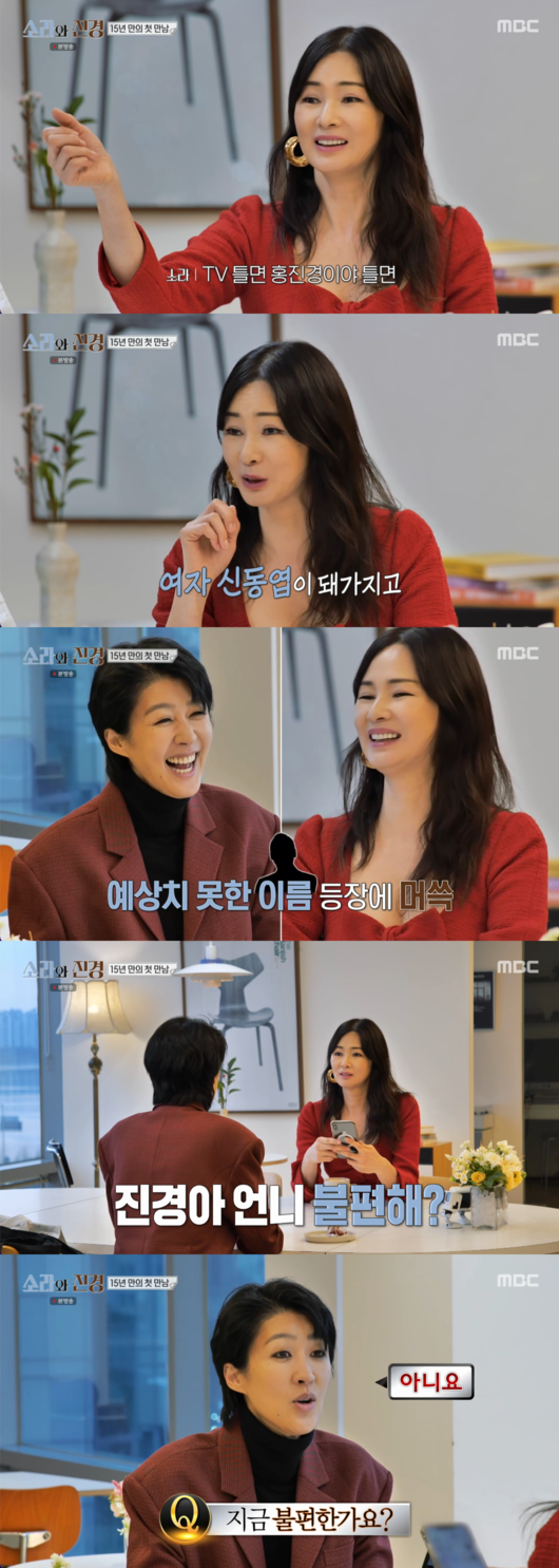 [OSEN=박근희 기자] '소라와 진경’ 모델 이소라가 15년 만에 재회한 절친 홍진경에게 '신동엽'을 직접 언급하며 아슬아슬한 분위기를 연출했다.