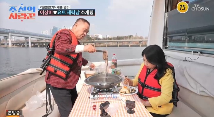 이날 방송에서 이상미는 "남자 만나는 게 몇백 년 만인지 모르겠다"며 '풀 메이크업'과 헤어 세팅까지 마친 채 설레는 마음으로 요트 선착장에 등장했다. 첫 번째 소개팅 상대는 자수성가한 구두 회사의 김원길 대표였다. 요트 안에서 이뤄진 첫 만남에서 김 대표는 빨간 구두를 선물하며 기선을 제압했다.