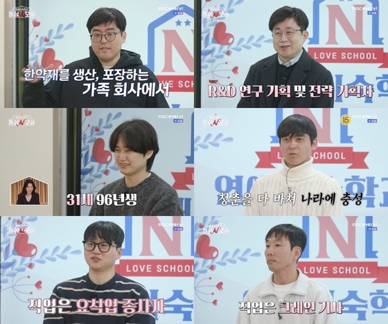 지난 28일 오후 방송된 MBC에브리원·E채널 예능 프로그램 '연애기숙학교 <돌싱N모솔>'에서는 지금까지 숨겨져 있던 모솔남들의 나이, 직업, 연애관 등이 공개되는 자기소개 시간이 펼쳐졌다.