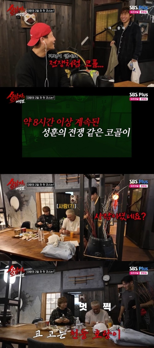 이들이 찾은 곳은 일본 전통 스타일 셰어하우스였다. 첫날부터 피곤한 일정을 마치고 잠자리에 든 가운데 얼마 지나지 않아 코골이 소리가 들렸다.