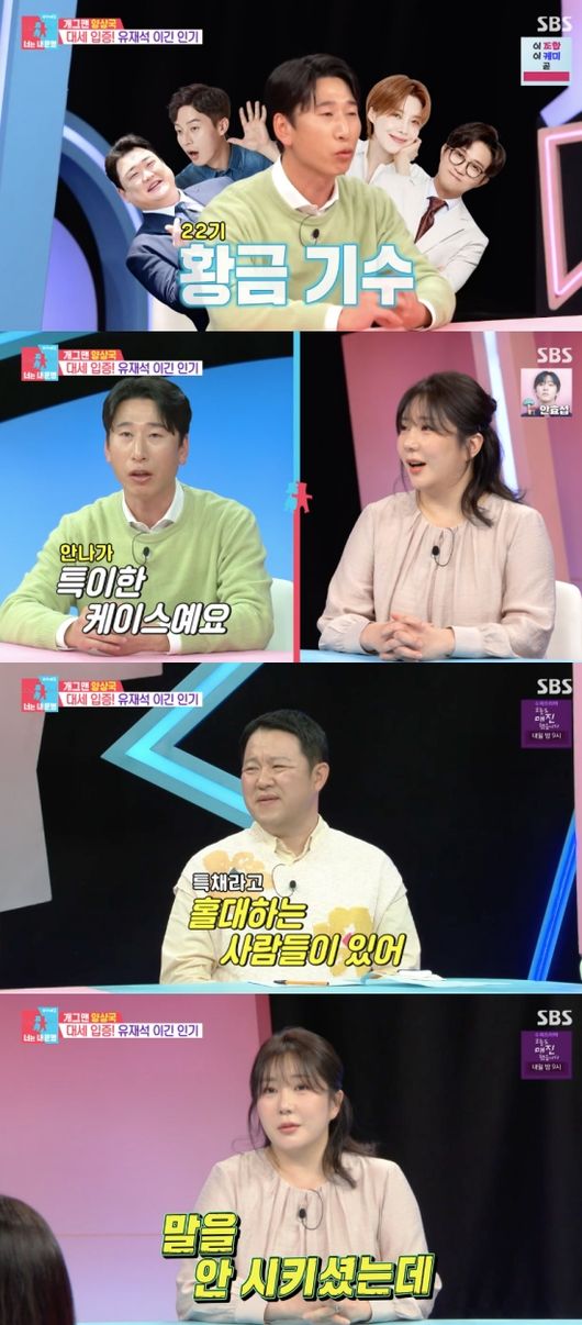 양상국, 허안나는 KBS 선후배 사이다. 양상국은 “안나가 특이한 케이스다. 23기 특채로 들어왔다가 24기 공채까지 받았다. 이게 쉽지 않다”라고 말했다. 김구라는 “특채라고 홀대하는 사람이 있다”라고 말했다. 김숙은 “바로 위 기수인 양상국이?”라고 말했고 허안나는 “말을 안 시키셨다”라고 말해 웃음을 자아냈다.