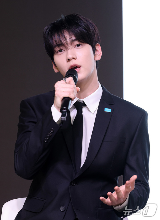 투모로우바이투게더 연준이 29일 서울 마포구 유니세프 한국위원회 블루홀에서 열린 전 세계 아동·청소년 마음건강 지원 '투게더 포 투모로우' 유니세프 캠페인 론칭 기자간담회에서 인사말을 하고 있다. 2026.4.29 © 뉴스1 박지혜 기자