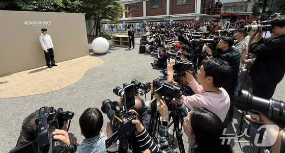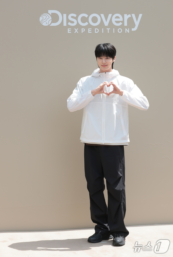 배우 변우석이 29일 서울 성동구 쎈느에서 열린 아웃도어 브랜드 디스커버리 익스페이션의 여름 시즌 브랜드 체험 행사 'DISCOVER YOUR ACTIVE SUMMER'에 참석해 꽃받침 포즈로 여심을 설레게 하고 있다. © 뉴스1 권현진 기자