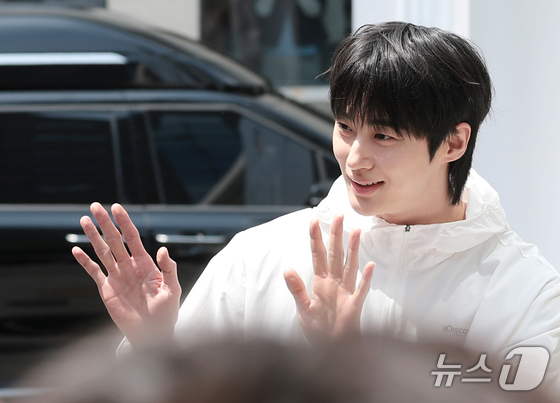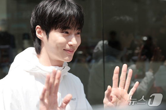 배우 변우석이 29일 서울 성동구 쎈느에서 열린 아웃도어 브랜드 디스커버리 익스페이션의 여름 시즌 브랜드 체험 행사 'DISCOVER YOUR ACTIVE SUMMER'에 참석해 인사를 하고 있다. © 뉴스1 권현진 기자